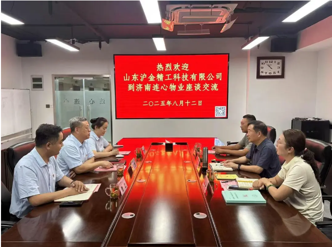 2025 年8月12日上午,山東滬金精工科技股份有限公司董事長(cháng)孟繼云,黨支部書(shū)記、人事行政經(jīng)理賈文杰等到濟南連心物業(yè)進(jìn)行工作互動(dòng)交流。連心物業(yè)黨支部書(shū)記、董事長(cháng)王宏勇,黨支部副書(shū)記、總經(jīng)理曹立、辦公室主任孫耀先等參加此次工作交流接待活動(dòng)。