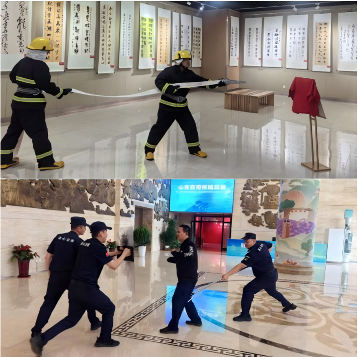 前置排查筑防線,安全保障零死角。9月26日,項(xiàng)目聯(lián)合文化館共同開(kāi)展全面安全檢查工作,對(duì)文化館的各個(gè)區(qū)域進(jìn)行了細(xì)致的排查。同時(shí)啟動(dòng)安全保障機(jī)制,工程團(tuán)隊(duì)對(duì)全館配電系統(tǒng)、應(yīng)急照明等設(shè)備開(kāi)展拉網(wǎng)式排查,重點(diǎn)檢修展廳設(shè)施設(shè)備與市集供電線路,消除潛在的火災(zāi)隱患,確保設(shè)備“零故障”運(yùn)行。秩序維護(hù)團(tuán)隊(duì)仔細(xì)檢查了消防設(shè)施設(shè)備是否完好有效、消防通道是否暢通無(wú)阻、對(duì)滅火器、消火栓等消防器材逐一檢查。通過(guò)監(jiān)控系統(tǒng)實(shí)現(xiàn)全域覆蓋,在廣場(chǎng)增設(shè)2處流動(dòng)崗,制定高峰客流分級(jí)疏導(dǎo)預(yù)案。組織全體員工開(kāi)展火災(zāi)疏散逃生演練、大客流應(yīng)急疏散演練、防暴恐演練,構(gòu)建起立體安全防護(hù)網(wǎng)。